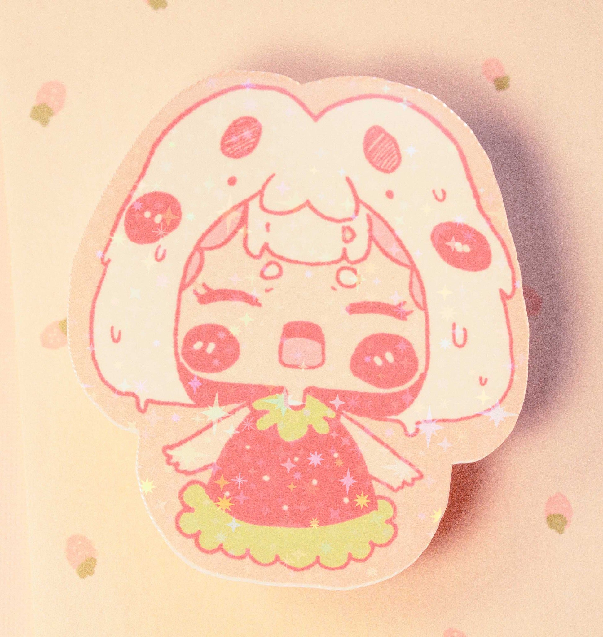 Holographic "Bunny Lula" sticker approximately 2x3 inches. Perfect for ipads, journals, binders, sticker books, and more! Accompany Miss Lula with her very own print/postcard. ♥