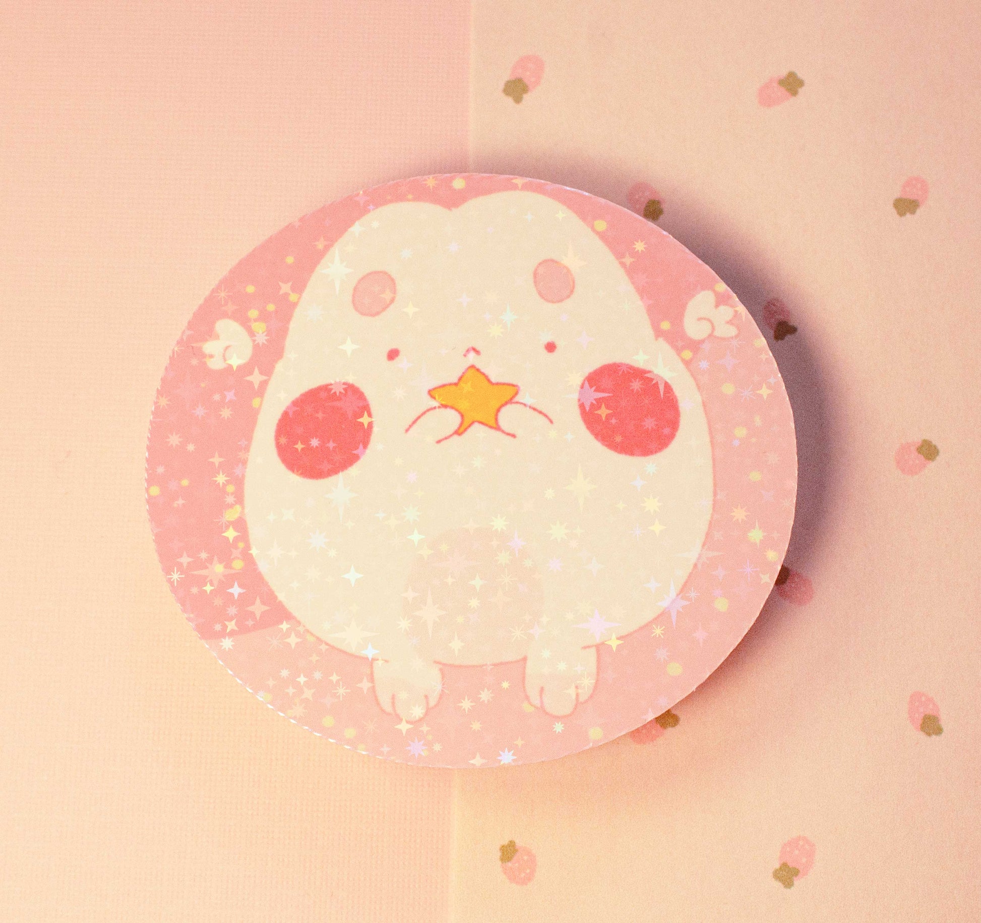 Holographic Star Chubbi Bunni Sticker approximately 2x3 inches. Perfect for ipads, journals, binders, sticker books and more! Check out the Chubbi Bunni pin and magnet along with the postcard! ♥