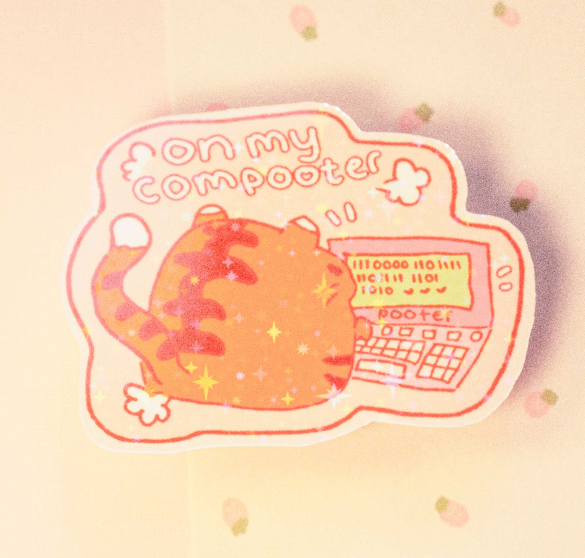 Holographic "On My Compooter!" sticker approximately 2x3 inches. Perfect for ipads, journals, binders, sticker books, and more!